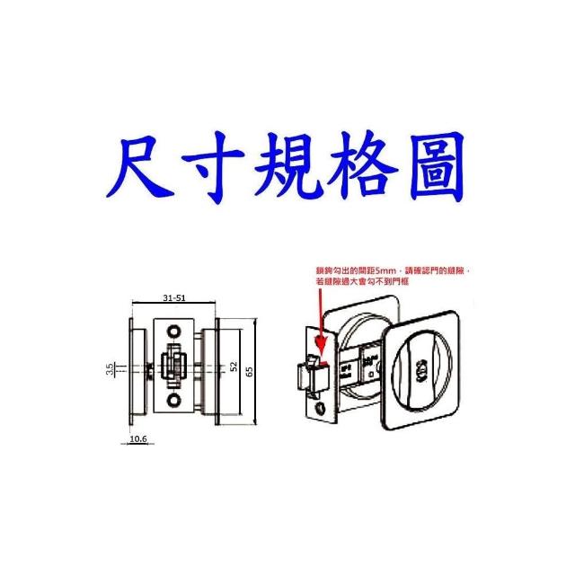東隆拉門鎖 Lucky/Ezset幸福牌JS50S00 崁入式雙邊方形戶引手鉤鎖 房間用/廁所用 拉門用