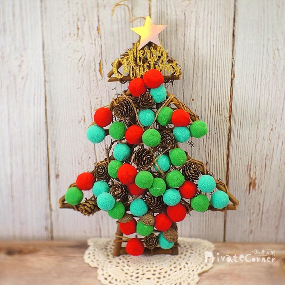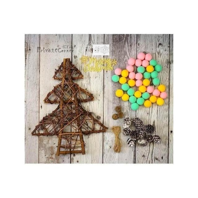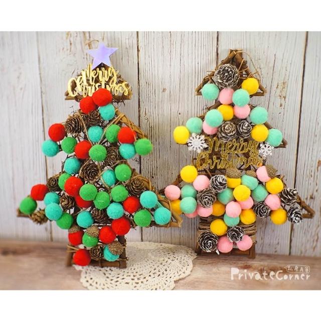 私房角落◎獨創!手作DIY毛球聖誕樹藤圈材料包(2色/4款)附字牌【EFE0017】毛球聖誕藤環花圈 大門裝飾 牆面掛飾