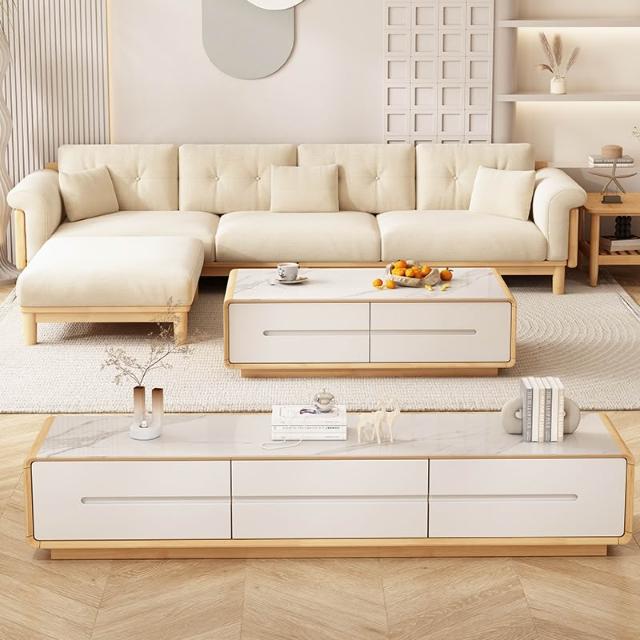 北歐實木沙發組合簡約客廳白色奶油風傢俱日系原木可拆洗布藝沙發