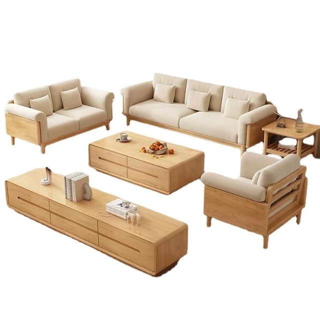 北歐實木沙發組合簡約客廳白色奶油風傢俱日系原木可拆洗布藝沙發