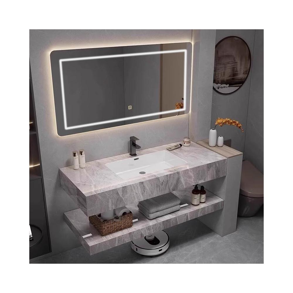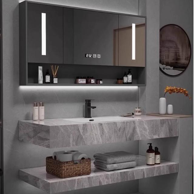 雙層岩板無縫洗手臺盆一體洗臉盆浴室櫃組合衛生間洗手盆工廠直銷
