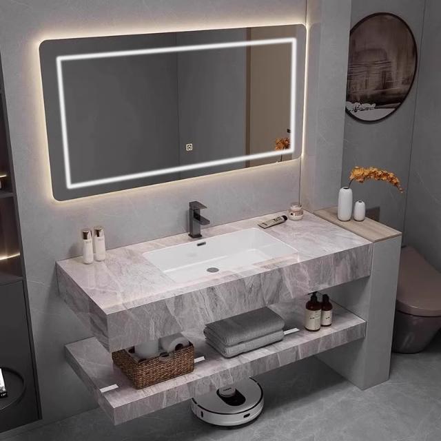 雙層岩板無縫洗手臺盆一體洗臉盆浴室櫃組合衛生間洗手盆工廠直銷