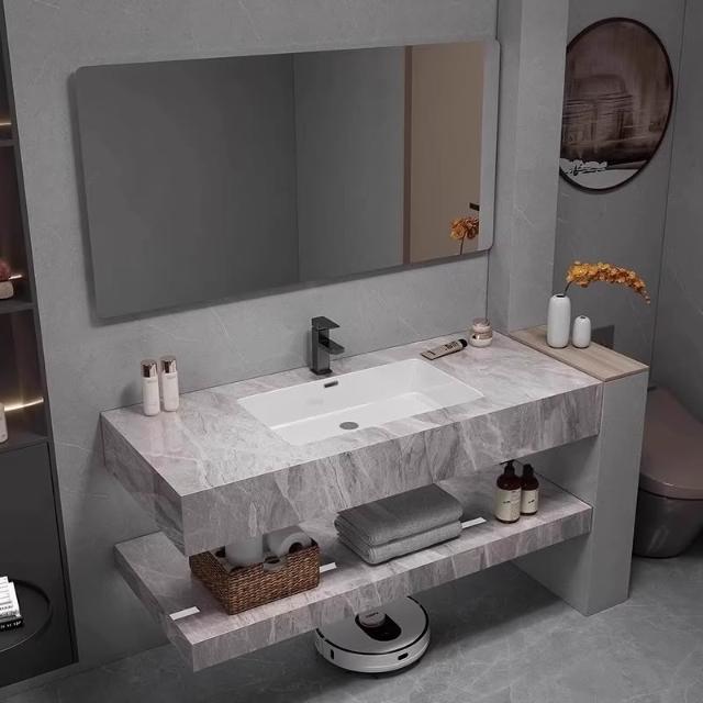 雙層岩板無縫洗手臺盆一體洗臉盆浴室櫃組合衛生間洗手盆工廠直銷