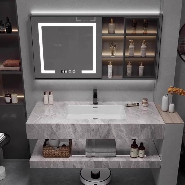 雙層岩板無縫洗手臺盆一體洗臉盆浴室櫃組合衛生間洗手盆工廠直銷