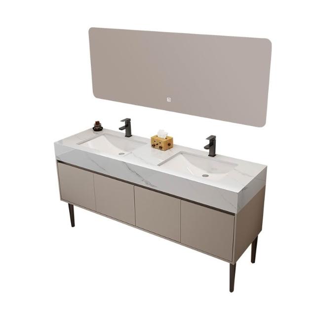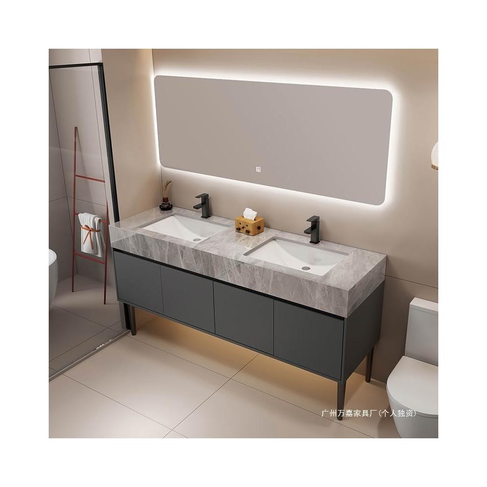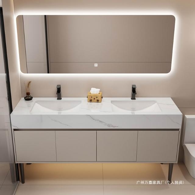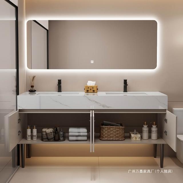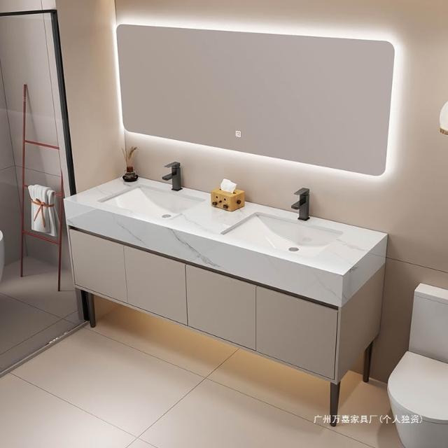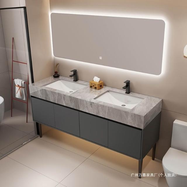 輕奢岩板雙盆落地式浴室櫃組合公共衛生間洗手洗臉洗漱臺池盆櫃