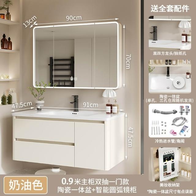 洗手臺陶瓷一體盆洗漱臺浴室櫃洗手盆浴室櫃組合洗臉盆蜂窩鋁