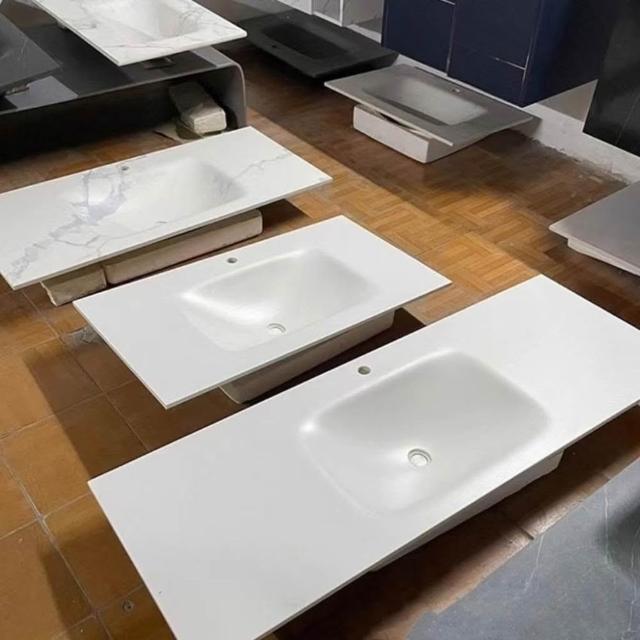 免運到府 岩板熱彎一體盆 洗手盆 熱壓成型洗手盆 臺盆 切角延長邊浴室櫃面盆 洗漱臺