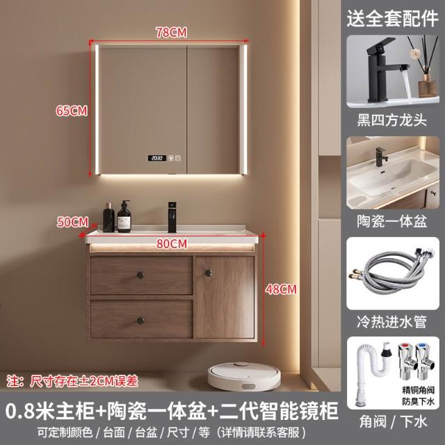 廠家直銷 免運 黑胡桃木浴櫃盆 簡約新中式衛浴臺盆 陶瓷一體櫃盆 浴室櫃組合 衛生間洗手臺浴櫃子