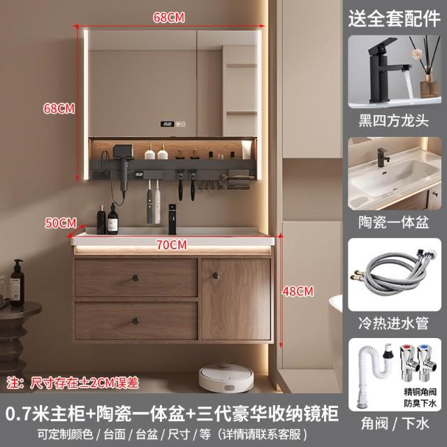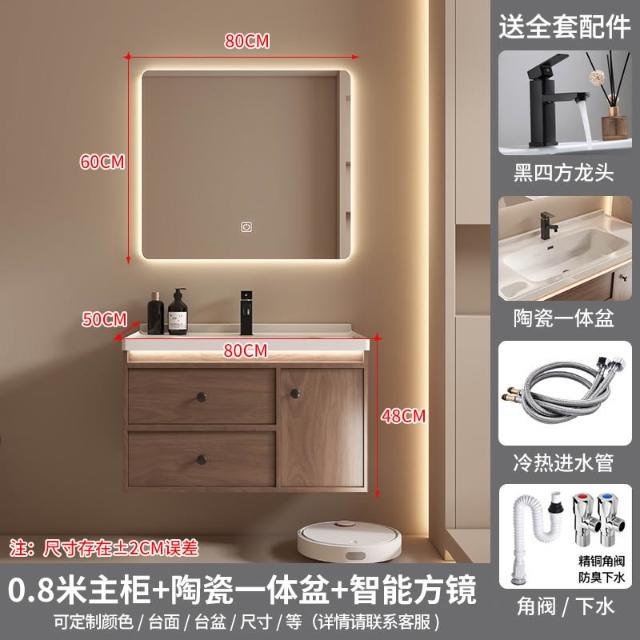 廠家直銷 免運 黑胡桃木浴櫃盆 簡約新中式衛浴臺盆 陶瓷一體櫃盆 浴室櫃組合 衛生間洗手臺浴櫃子