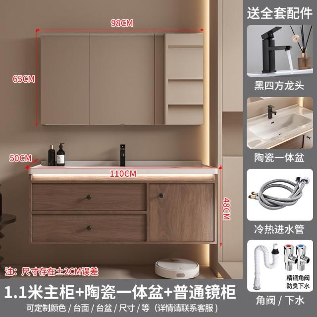 廠家直銷 免運 黑胡桃木浴櫃盆 簡約新中式衛浴臺盆 陶瓷一體櫃盆 浴室櫃組合 衛生間洗手臺浴櫃子