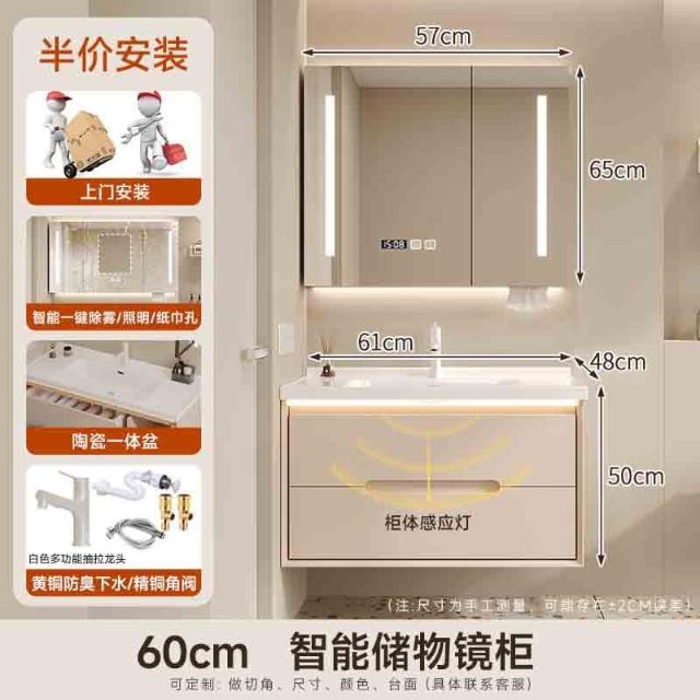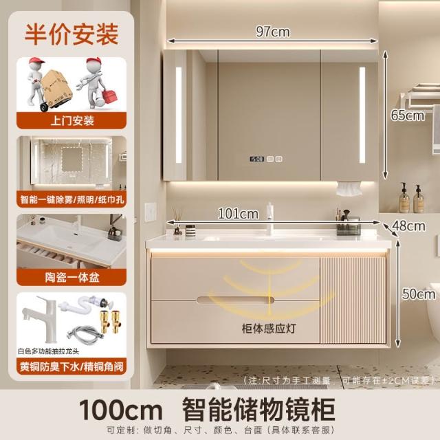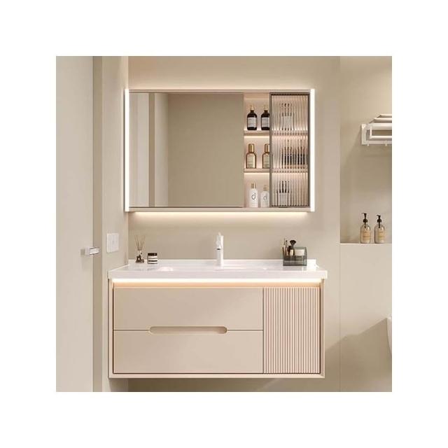 奶油風浴室櫃陶瓷一體盆衛生間洗手盆洗臉盆櫃組合洗手臺盆衛浴櫃