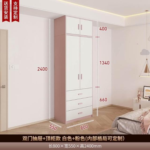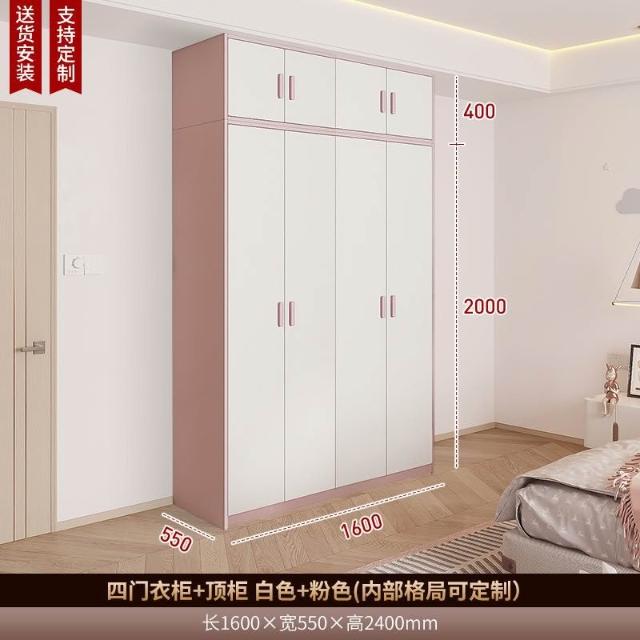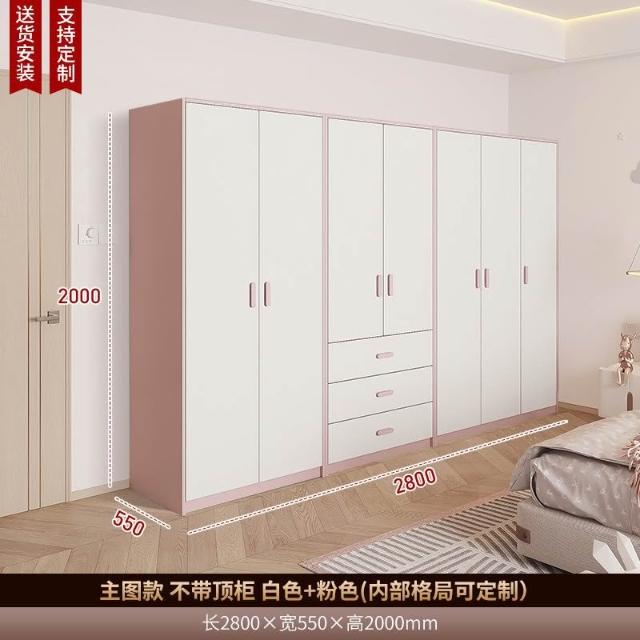W*兒童房衣櫃臥室家用女孩粉色整牆到頂實木衣櫥收納櫃子平開門可