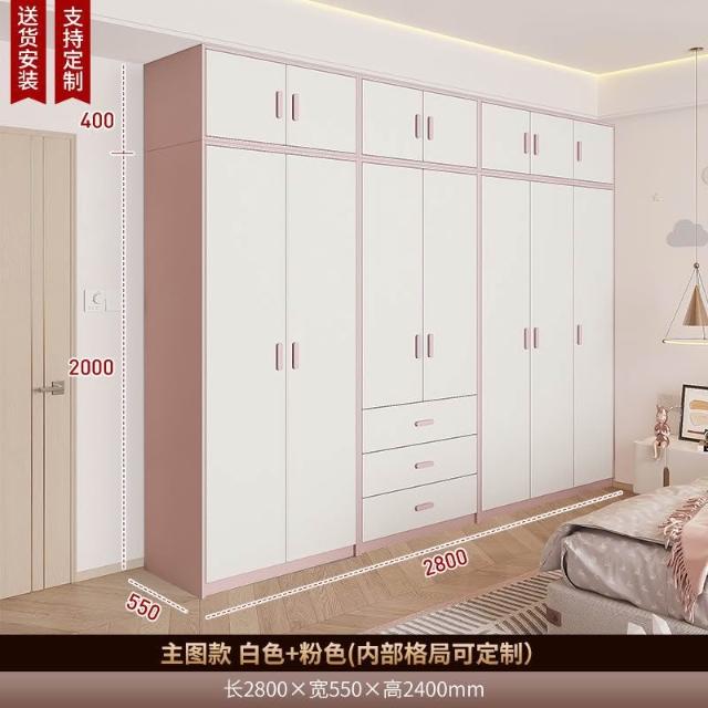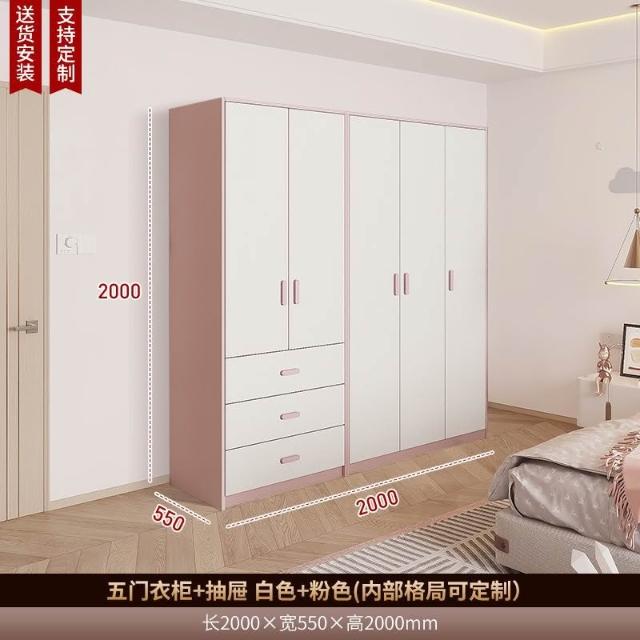 W*兒童房衣櫃臥室家用女孩粉色整牆到頂實木衣櫥收納櫃子平開門可