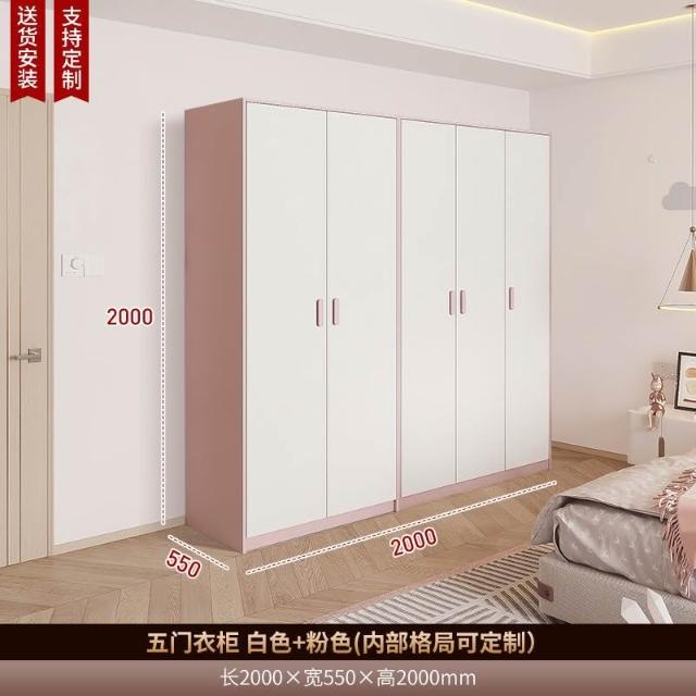 W*兒童房衣櫃臥室家用女孩粉色整牆到頂實木衣櫥收納櫃子平開門可
