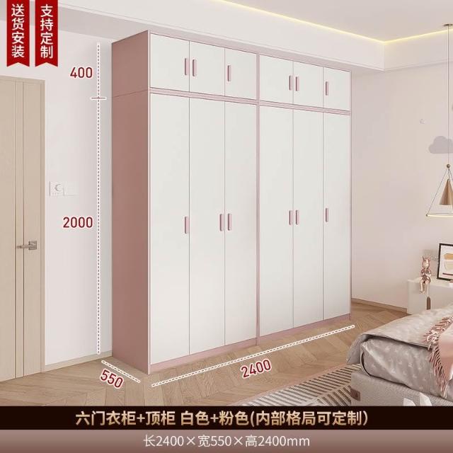 W*兒童房衣櫃臥室家用女孩粉色整牆到頂實木衣櫥收納櫃子平開門可