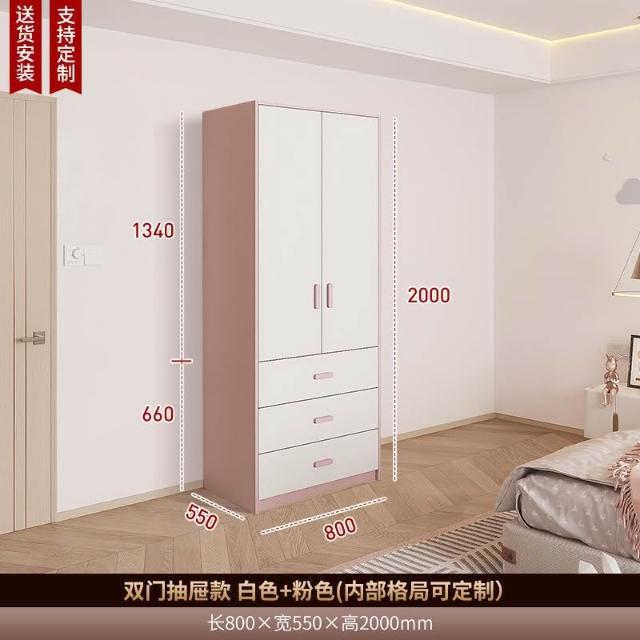 W*兒童房衣櫃臥室家用女孩粉色整牆到頂實木衣櫥收納櫃子平開門可