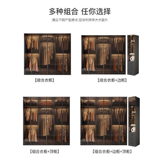 實木衣櫃臥室家用玻璃門L型現代輕奢轉角衣帽間收納櫃子組合衣櫥