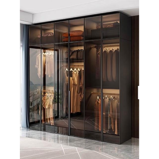 實木衣櫃臥室家用玻璃門L型現代輕奢轉角衣帽間收納櫃子組合衣櫥