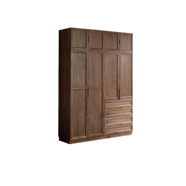 北歐日式原木黑胡桃木櫻桃木全實木大衣櫃整體臥室開放式衣帽衣櫥