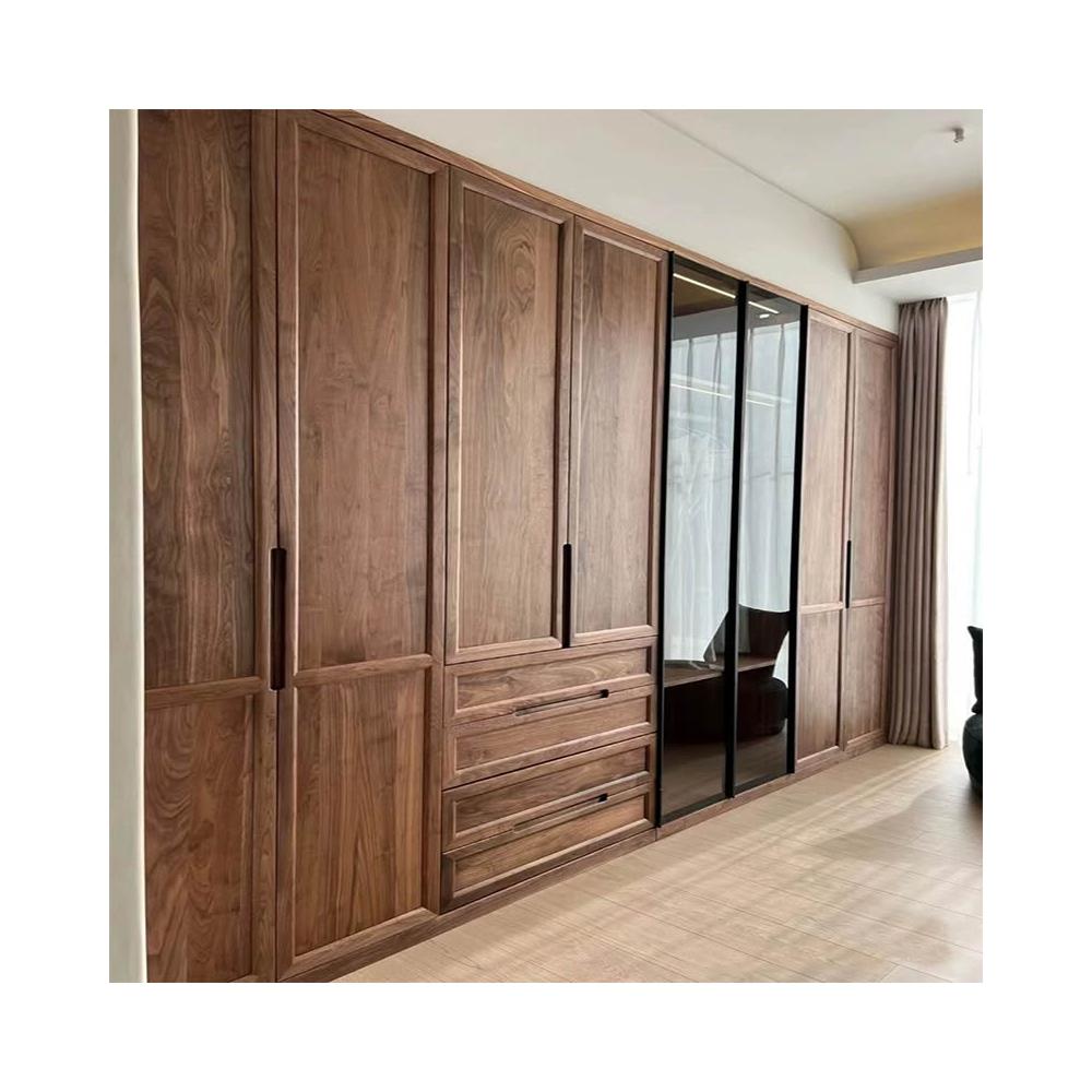 北歐日式原木黑胡桃木櫻桃木全實木大衣櫃整體臥室開放式衣帽衣櫥