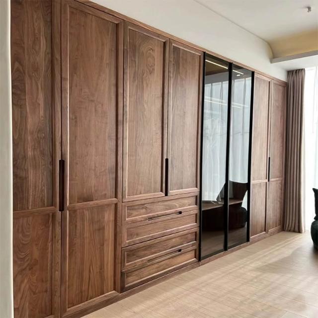北歐日式原木黑胡桃木櫻桃木全實木大衣櫃整體臥室開放式衣帽衣櫥