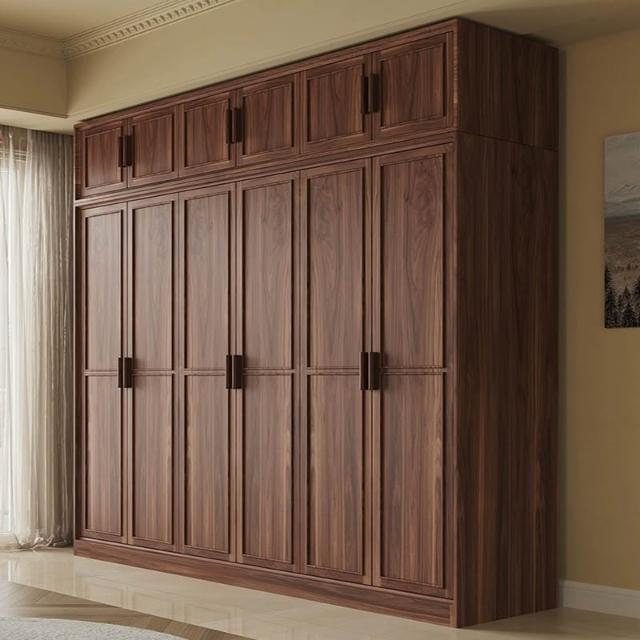 北歐日式原木黑胡桃木櫻桃木全實木大衣櫃整體臥室開放式衣帽衣櫥