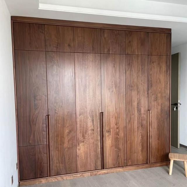 北歐日式原木黑胡桃木櫻桃木全實木大衣櫃整體臥室開放式衣帽衣櫥