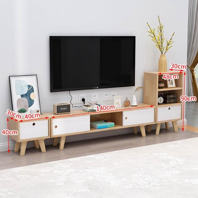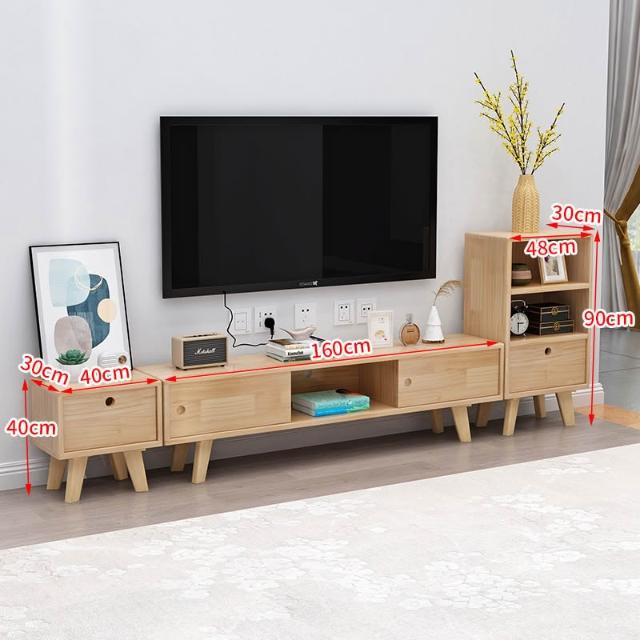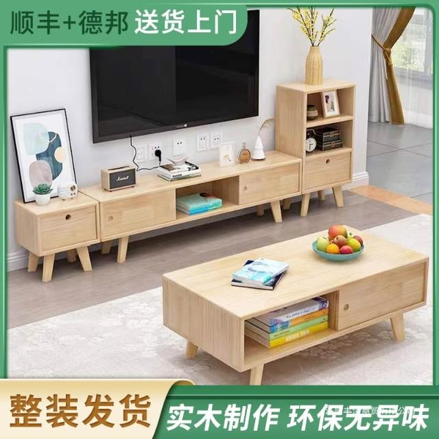 實木松木電視櫃茶几組合簡約小戶型臥室客廳地櫃收納牆櫃矮櫃整