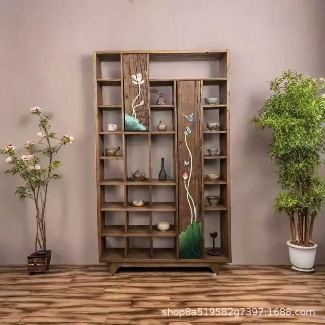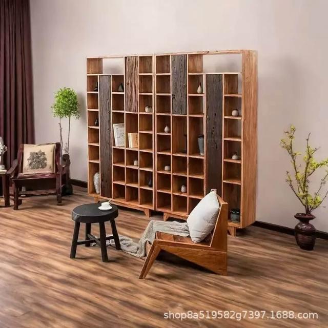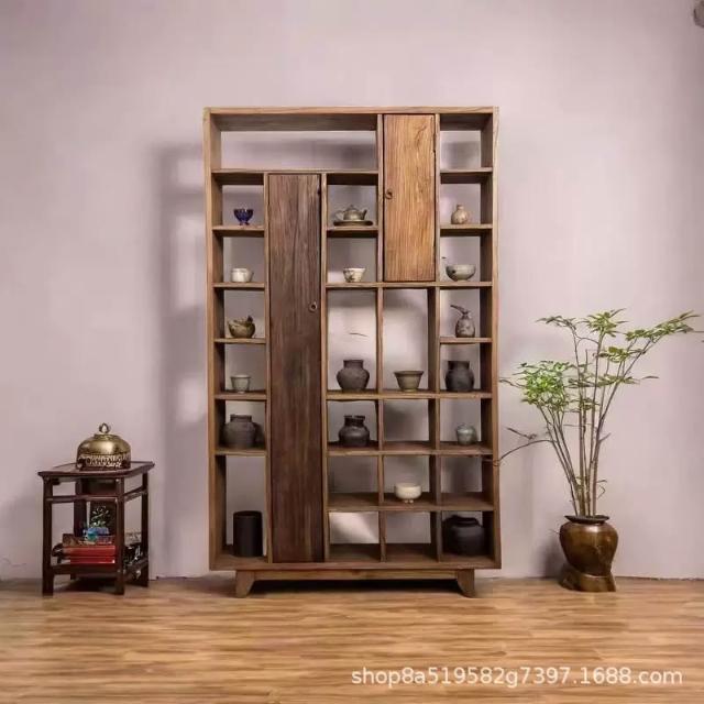 中式老榆木博古架家用茶具裝飾品古玩展示架民宿多寶閣實木博古架