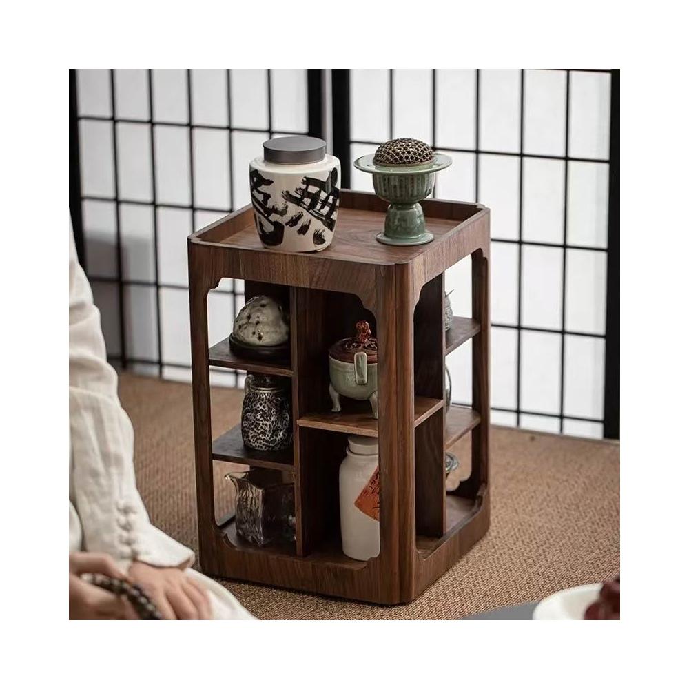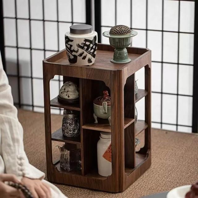 博古架北美黑胡桃實木榫卯結構中古侘寂風旋轉茶壺多功能置物架