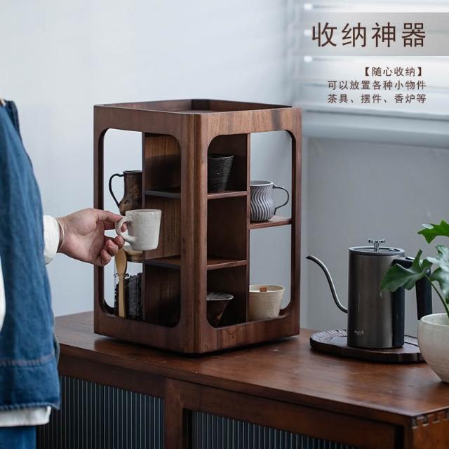 博古架北美黑胡桃實木榫卯結構中古侘寂風旋轉茶壺多功能置物架