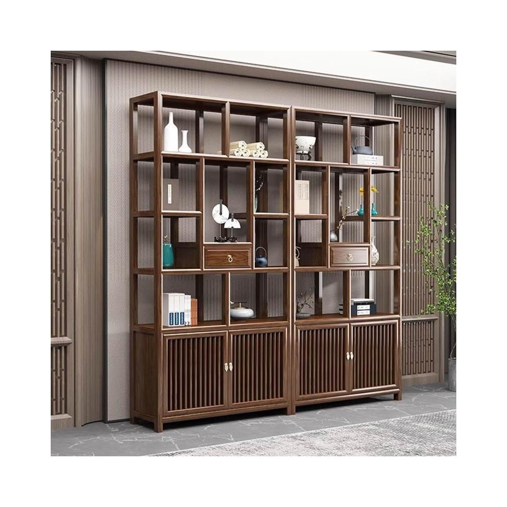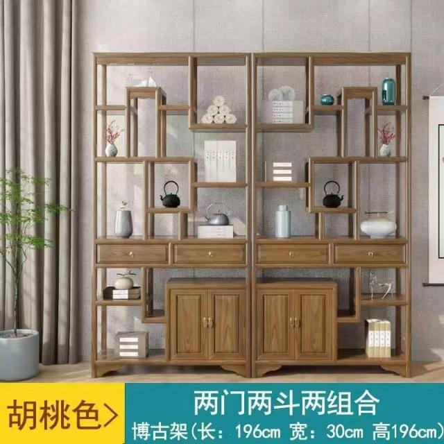 實木新中式博古架南榆木置物架仿古茶葉茶室展示櫃客廳隔斷置物架