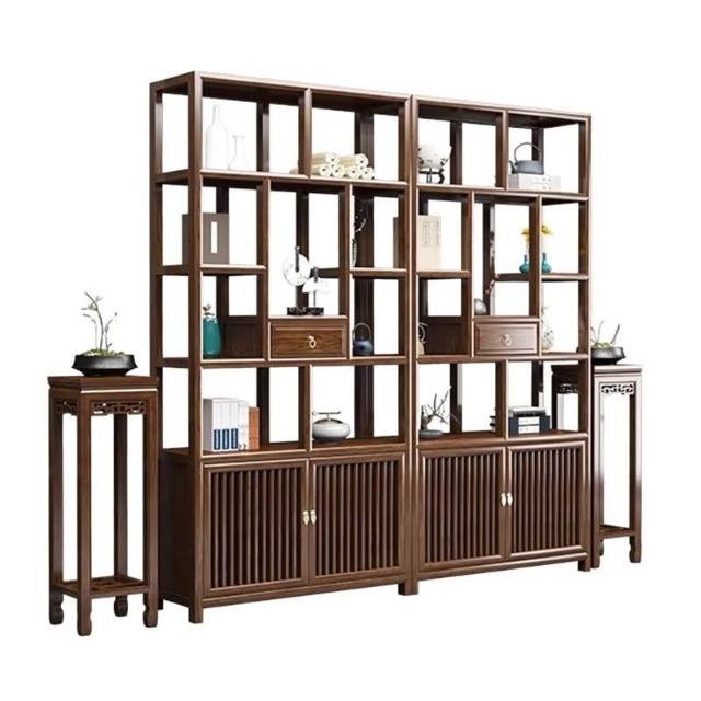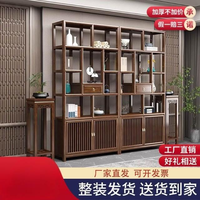 實木新中式博古架南榆木置物架仿古茶葉茶室展示櫃客廳隔斷置物架