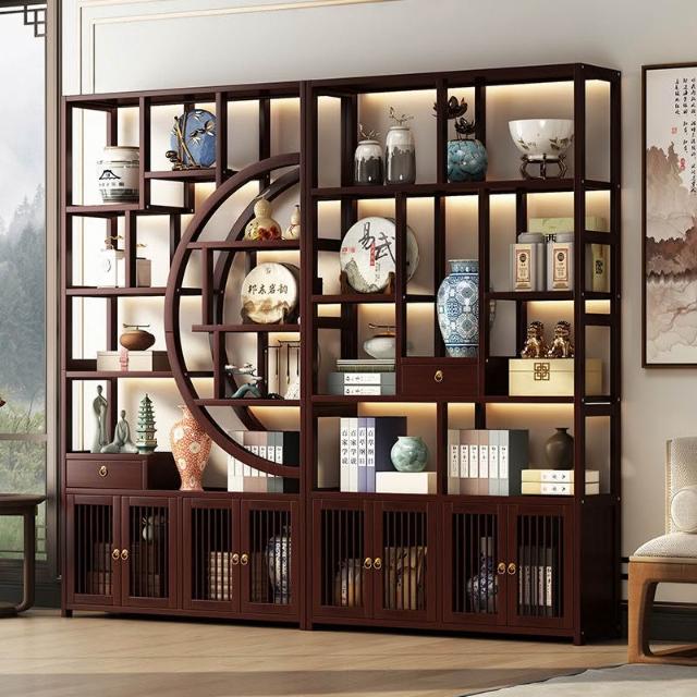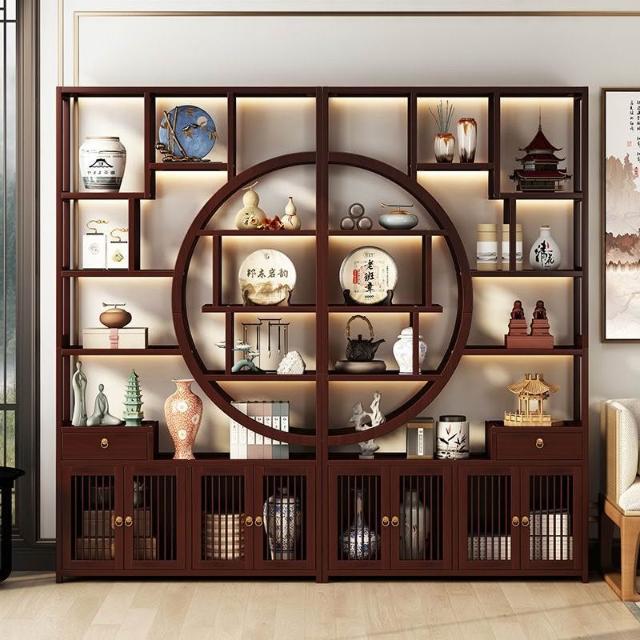 復古客廳博古架新中式置物架茶具展示櫃家用擺件陳列架隔斷收納櫃