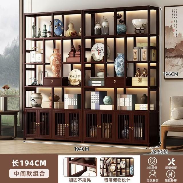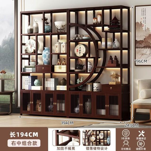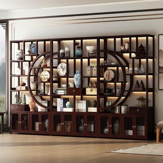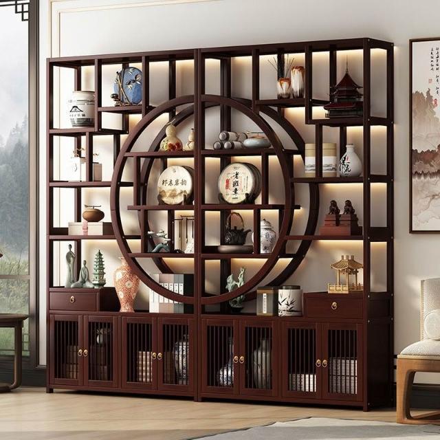復古客廳博古架新中式置物架茶具展示櫃家用擺件陳列架隔斷收納櫃