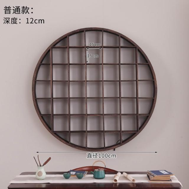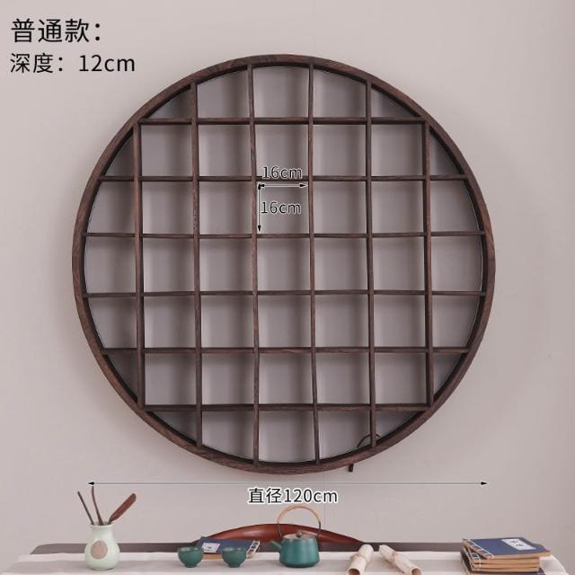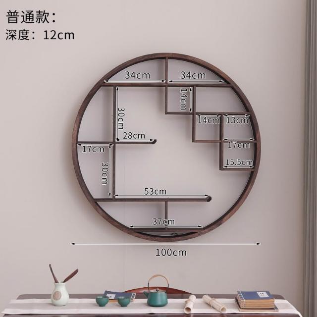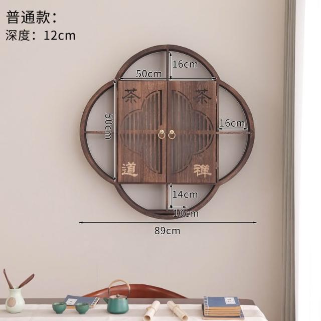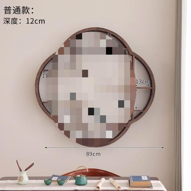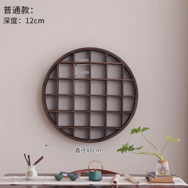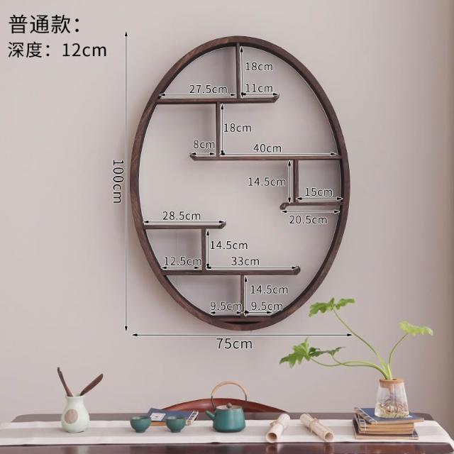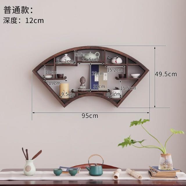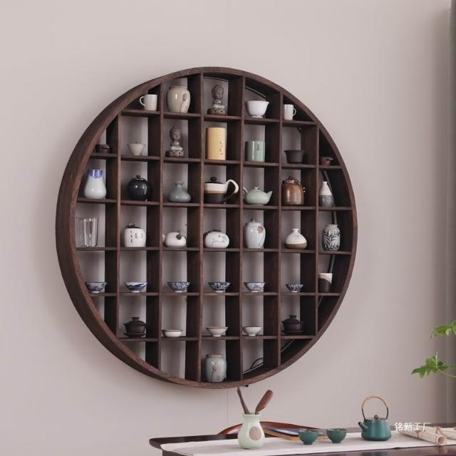 扇形燈帶博古架實木茶杯茶具收納多寶閣置物架中式復古格子壁掛式