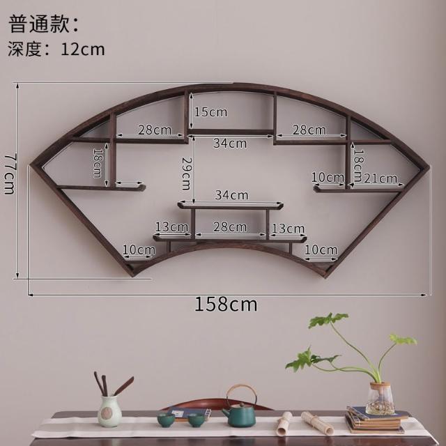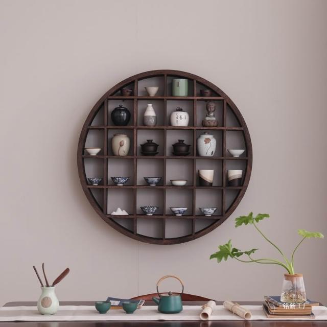 扇形燈帶博古架實木茶杯茶具收納多寶閣置物架中式復古格子壁掛式