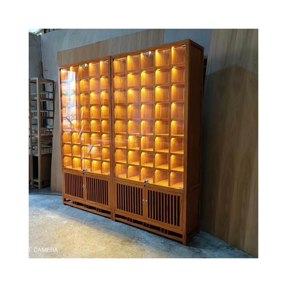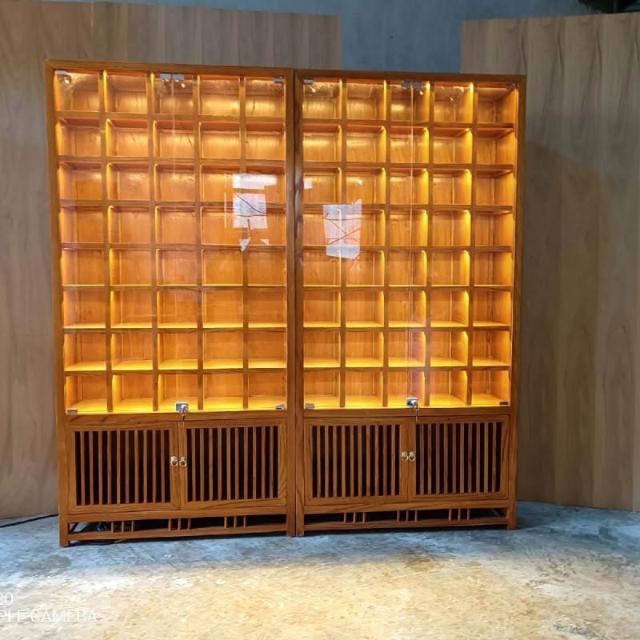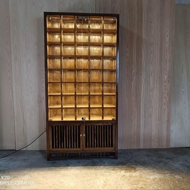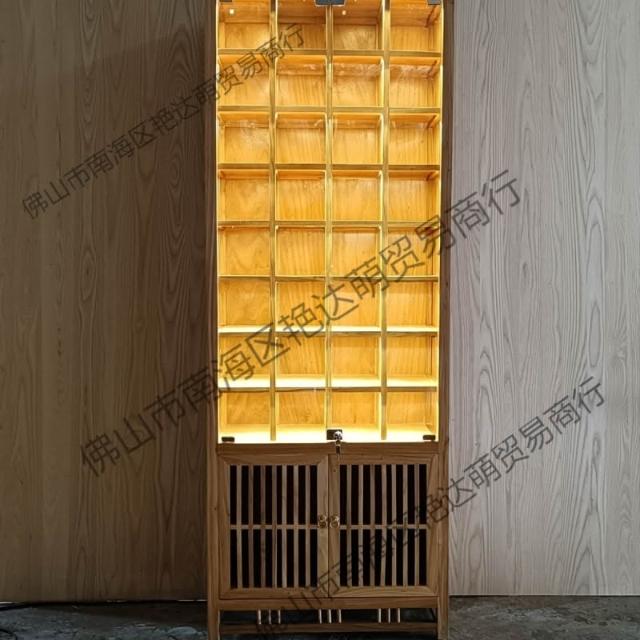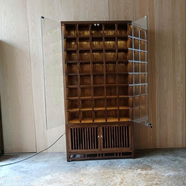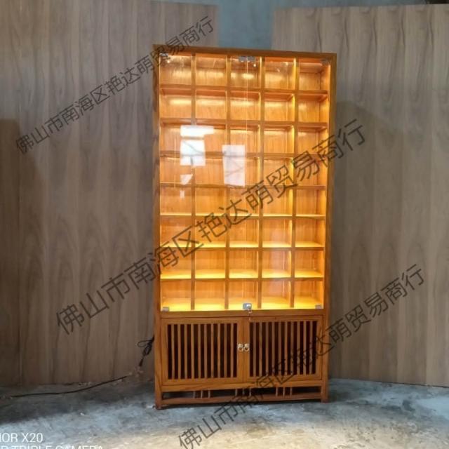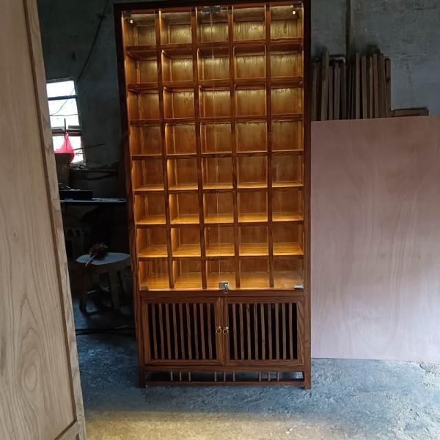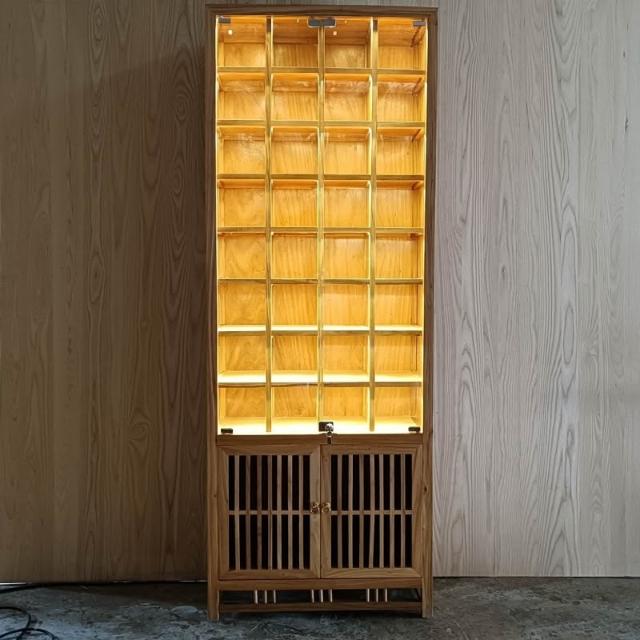 實木格子架紫砂壺玻璃茶杯茶壺多寶閣榆木博古架帶燈帶燈展示櫃