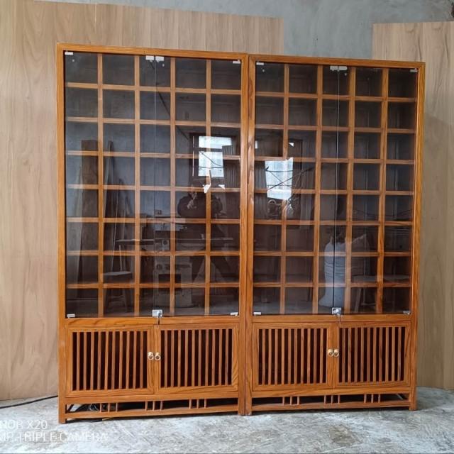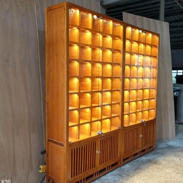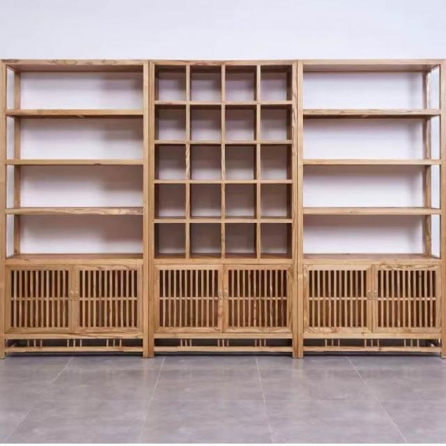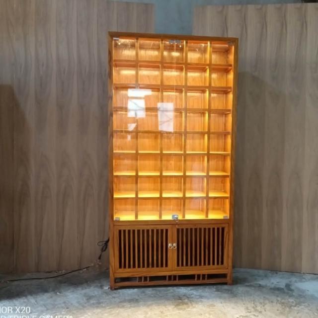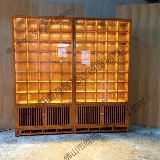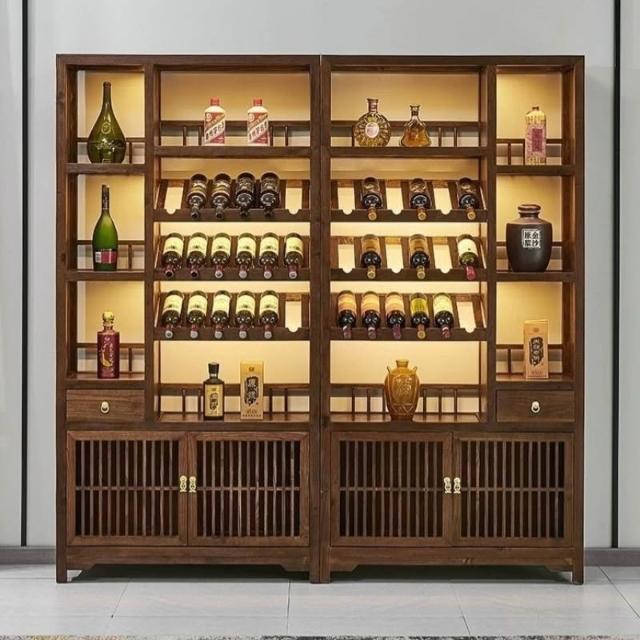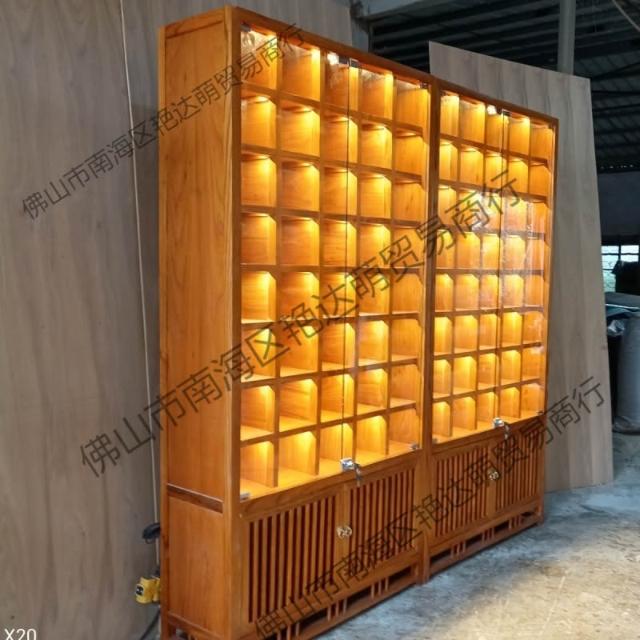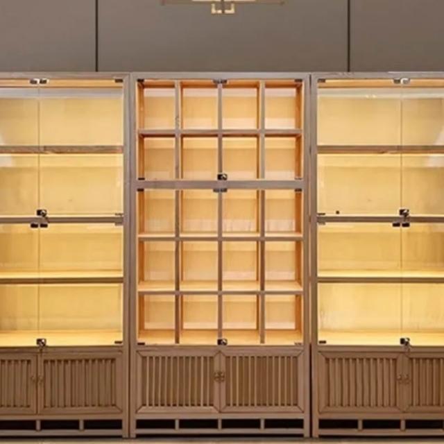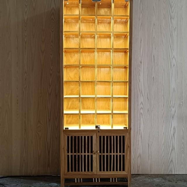 實木格子架紫砂壺玻璃茶杯茶壺多寶閣榆木博古架帶燈帶燈展示櫃