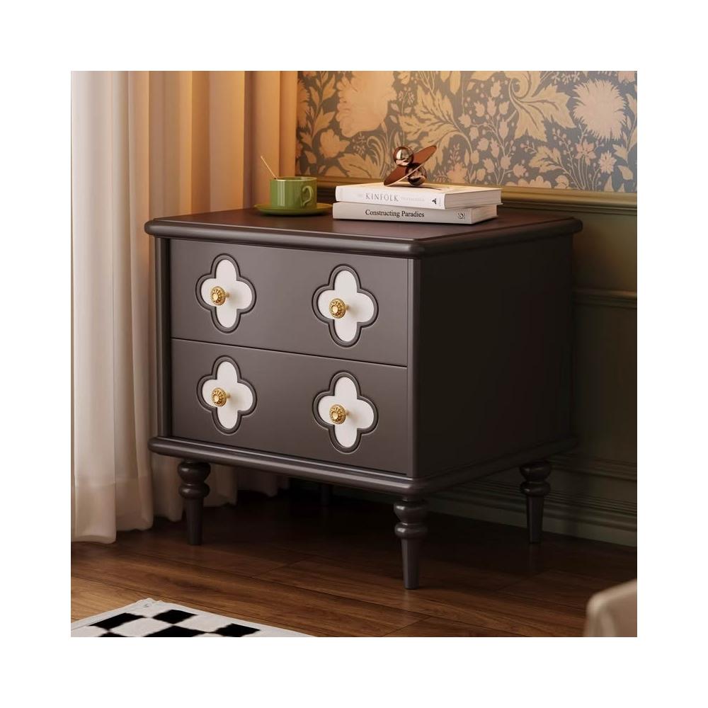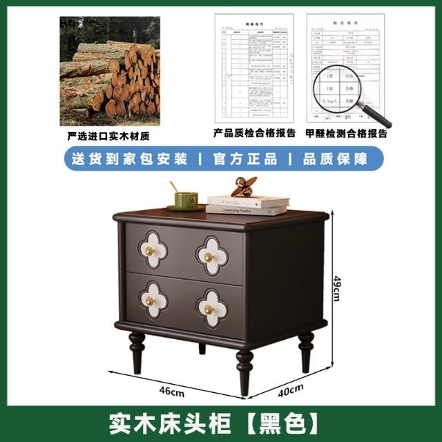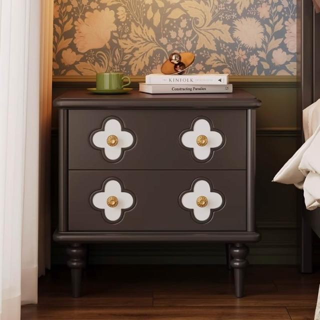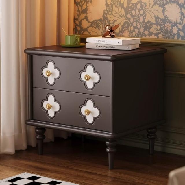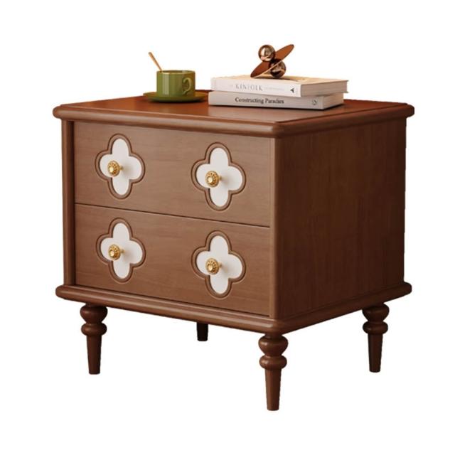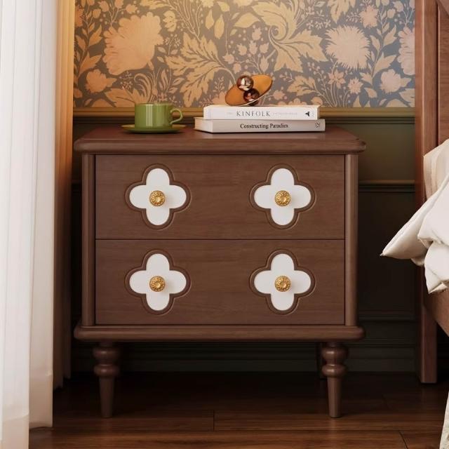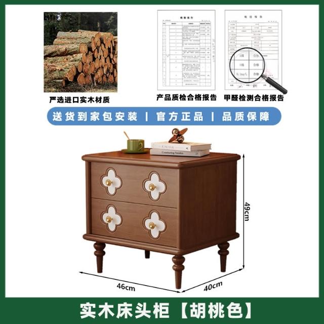 復古床頭櫃實木小型收納胡桃色中古風法式儲物矮櫃家用臥室床邊櫃