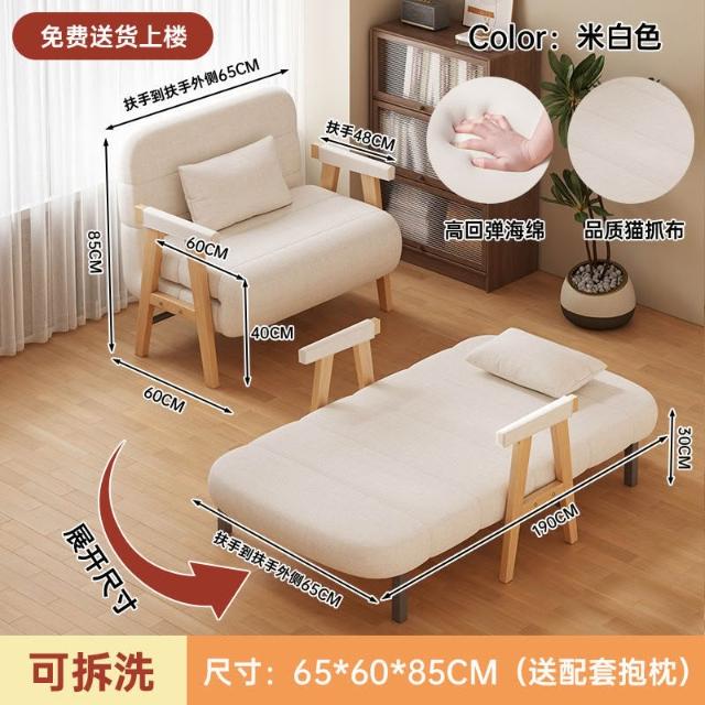 原木風沙發床折疊實木沙發床臥室多功能沙發椅單人小戶型陽臺客廳