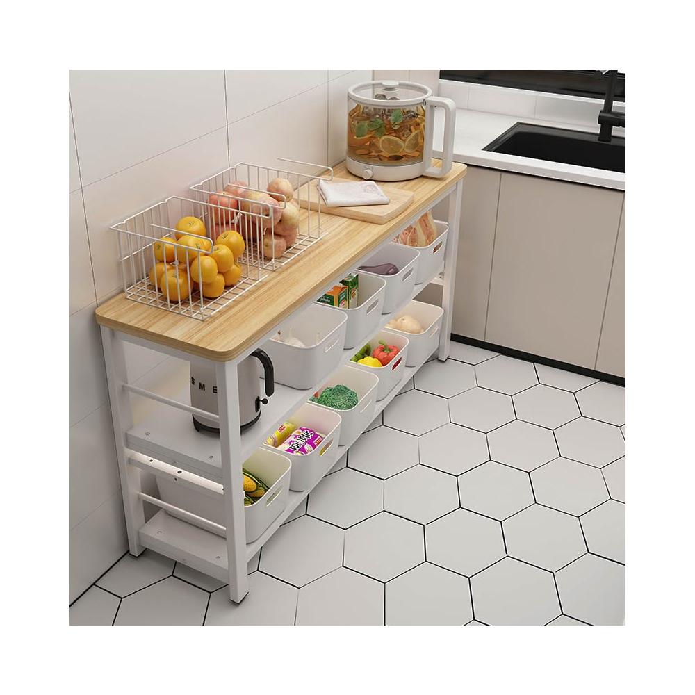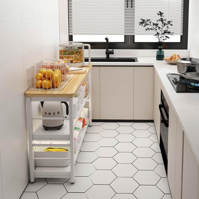 廚房置物架落地多功能切菜桌長條備餐工作臺微波爐鍋具收納窄邊櫃