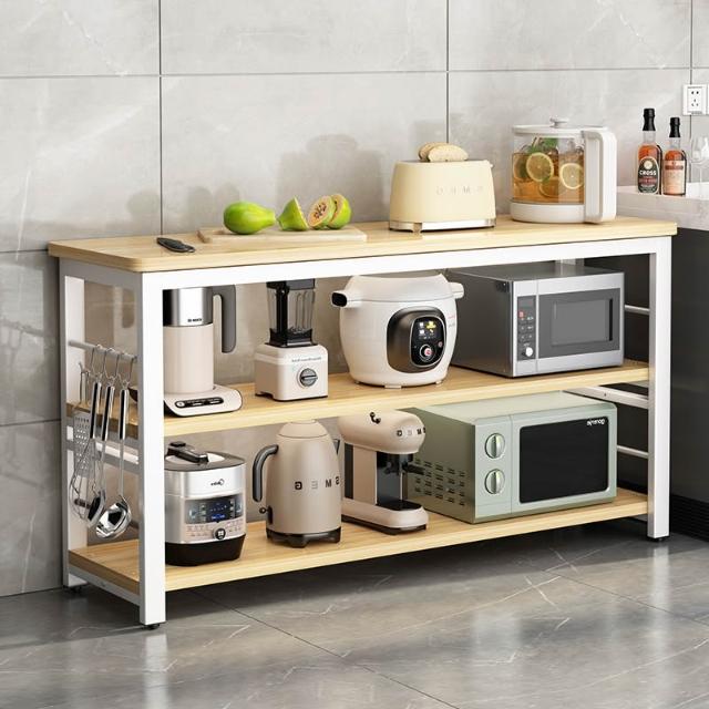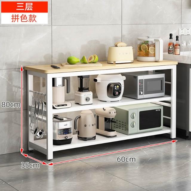 廚房置物架落地多功能切菜桌長條備餐工作臺微波爐鍋具收納窄邊櫃
