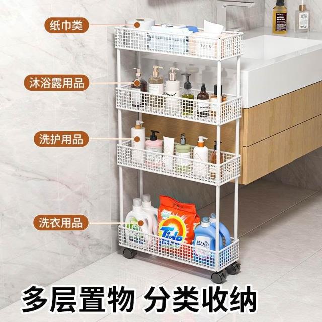 門後衛生間夾縫收納櫃極窄置物架浴室縫隙窄櫃落地帶輪收雯沃