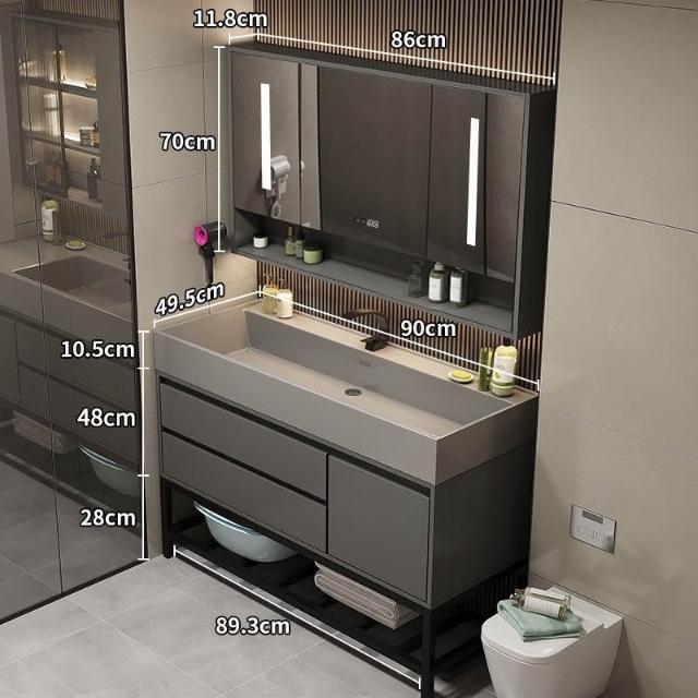 輕奢納米岩石盆浴室櫃衛生間洗漱洗手臺洗臉盆櫃浴室櫃鏡櫃組合
