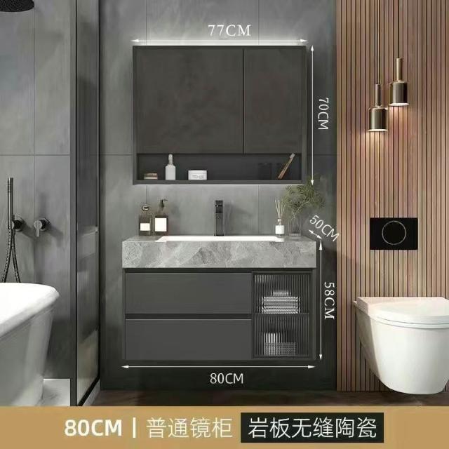岩板陶瓷無縫拼接一體盆實木浴室櫃組闔家用洗手洗臉盆智能鏡櫃LF