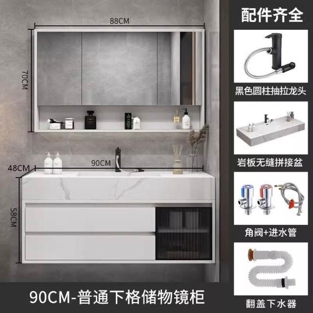岩板陶瓷無縫拼接一體盆實木浴室櫃組闔家用洗手洗臉盆智能鏡櫃LF