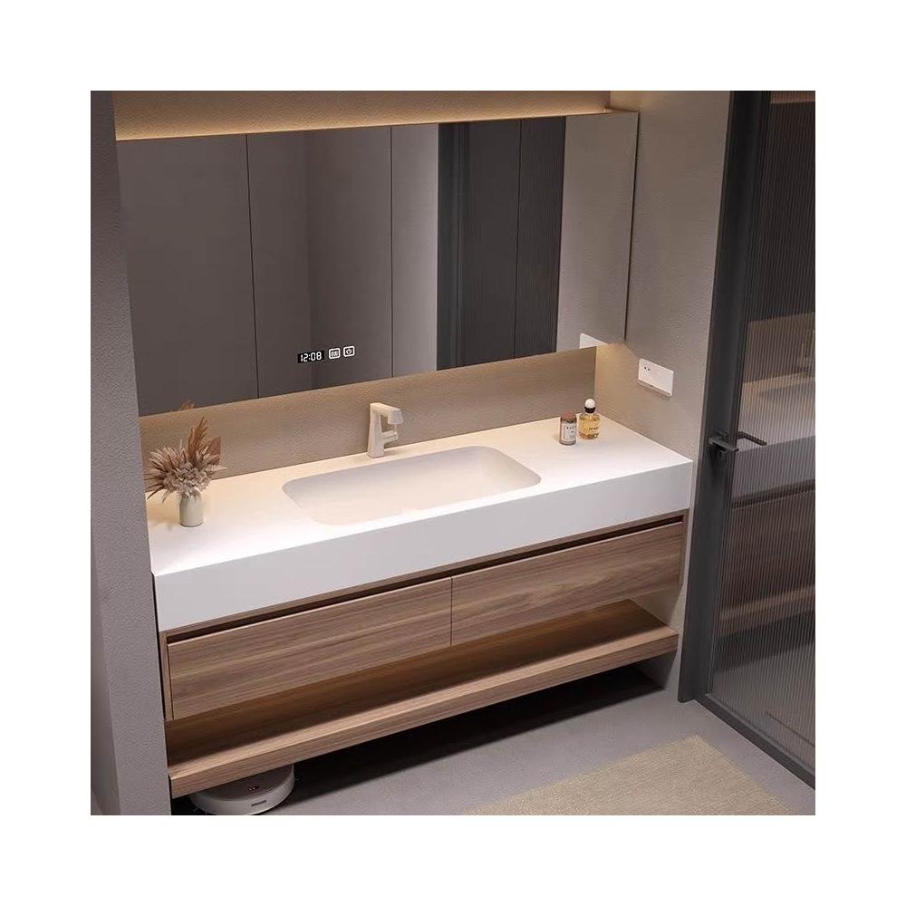 可麗耐一體盆岩板無縫熱彎浴室櫃組合衛生間洗手洗臉洗漱臺
