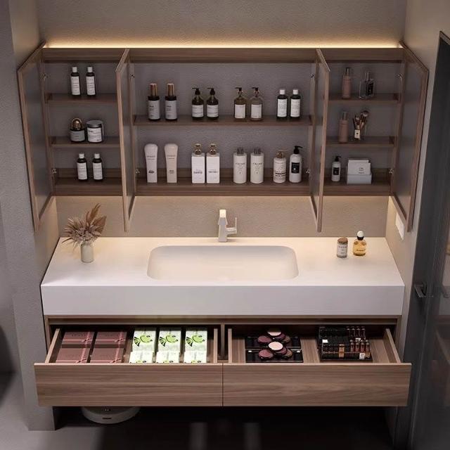 可麗耐一體盆岩板無縫熱彎浴室櫃組合衛生間洗手洗臉洗漱臺