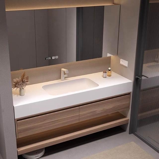 可麗耐一體盆岩板無縫熱彎浴室櫃組合衛生間洗手洗臉洗漱臺